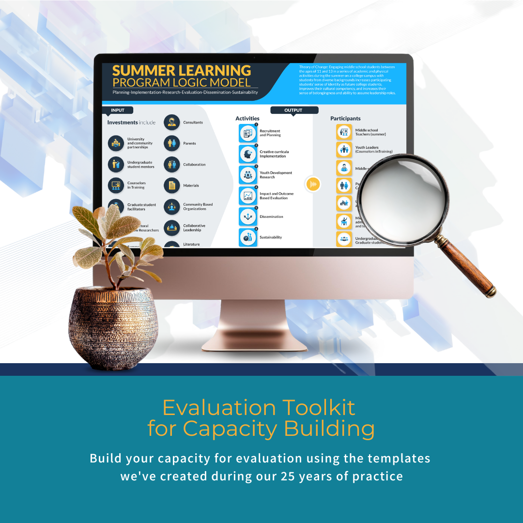The Evaluation Toolkit is your go-to resource for streamlining program evaluation and maximizing your success. It includes a comprehensive suite of tools: a 60-minute coaching session, a logic model workbook, a participant recruitment template, and more. Whether you’re new to program evaluation or looking to refine your strategies, this toolkit empowers you to achieve your goals efficiently and effectively.